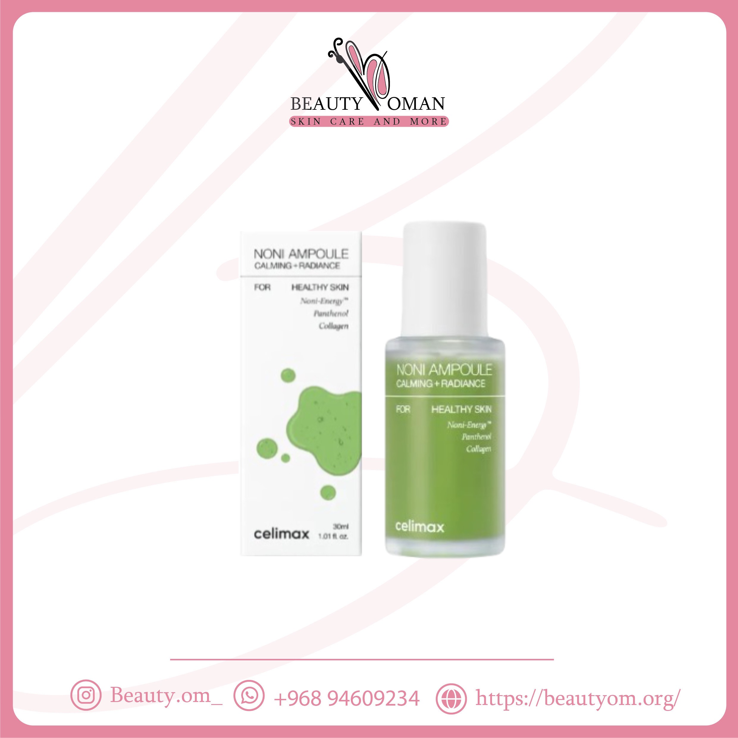 - غني بمستخلص نوني بنسبة 81.67% الذي يوفر أكثر من 200 نوع من المغذيات المفيدة للبشرة.